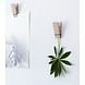 The smallest item in the Moebe collection is the pinch. A kind of clip that you can put down or hang on a nail on the wall. If you put it down you can put a nice card in it. Or put them on the table during dinner for small menu notes or the seating arrangement. You can also put a card on the wall between them, but also consider a nice leaf or a spring.