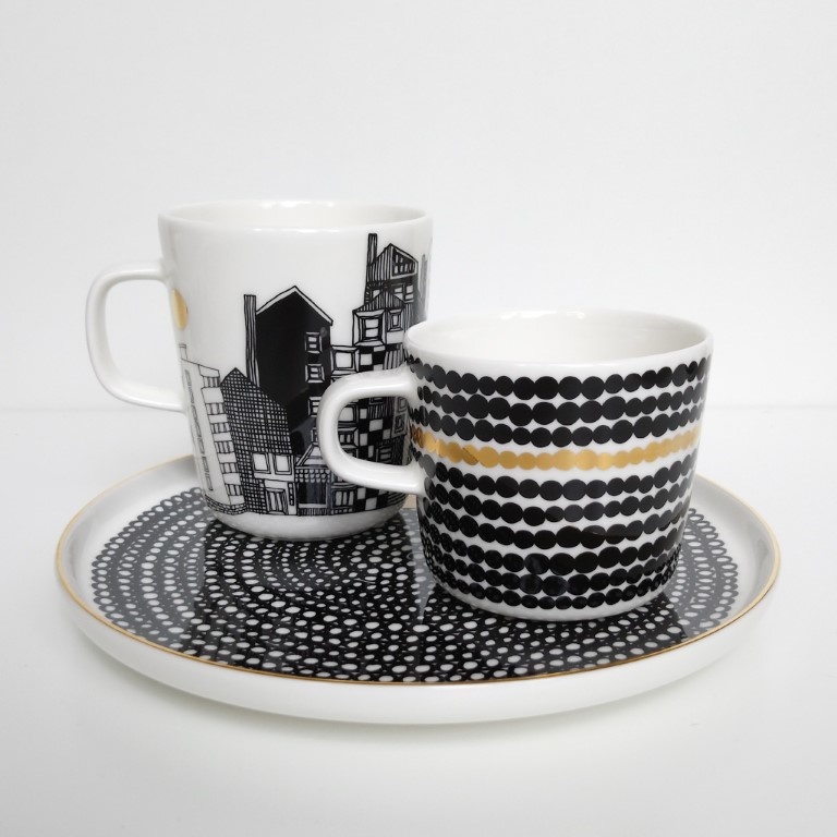 Het 10-jarig jubileum kon niet ongemerkt voorbij gaan. Hiervoor ontwierp Marimekko speciale jubileum items met een gouden touch. Het gouden randje langs het Räsymatto bord maakt het erg speciaal. Bij de Räsymattobeker is een deel van het zwart patroon vervangen door een goudkleurig patroon. Het zijn echte ‘collector’s items’. Ze zijn tijdelijk verkrijgbaar, zolang de voorraad strekt. Alle items uit deze bijzondere jubileum serie zijn aan de onderkant voorzien van een speciale goudkleurige jubileum stempel.