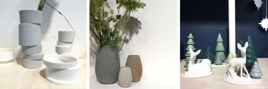 Keramiek is ook altijd veel aanwezig op de beurs en gelukkig maar, want daar zijn we beide dol op. We zijn sowieso bij Lars Rank langs geweest, want daar werkt Jacqueline al jaren mee samen. Mijn favoriet van hem blijft toch de ‘stacked’ vazen, elke vaas is uniek uit deze serie, omdat hij bij elke vaas de mallen (de ringen als het ware) opnieuw stapelt. Heel tof!