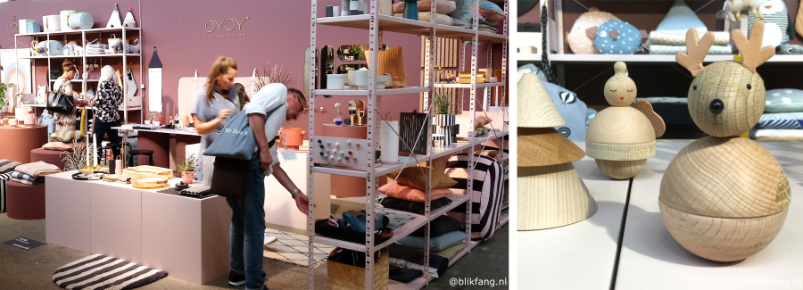 De stand van OYOYis altijd een genot om te bezoeken, want die ziet er elke keer weer supertof uit. Lotte Fynboe de Deense ontwerpster had ditmaal zelfs een popcorn machine geregeld, zodat we onder het genot van deze snack haar nieuwe ontwerpen konden bekijken. Blij werden we van het nieuwe houten rendiertje, een nieuwe kinderplacematen toffe vloerkleden.