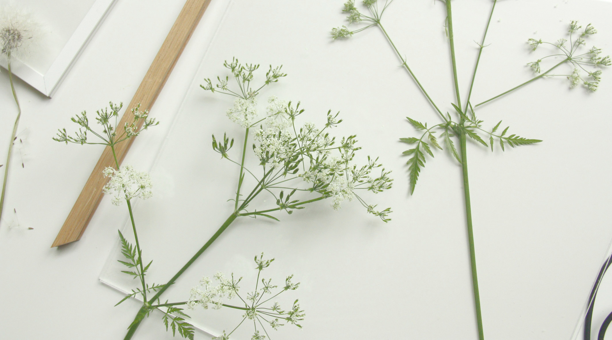 Is het lastig het inlijsten van bloemen, nee… Uiteraard hangt het wel af van de bloem, hoe meer takjes of bladeren hoe lastiger, dan is ‘t misschien soms met z’n tweeën wat handiger, maar over het algemeen lukt het prima in je eentje. Belangrijkste is om de lijst goed schoon te maken, zodat eventuele restjes van de vorige bloemen weg zijn. Omdat de middelste takken van fluitenkruid best wel dik zijn heb ik die in dit geval in de lengte door midden gesneden, zodat het verschil in dikte wat minder groot zou zijn en de bloem in zijn geheel mooier ingelijst konden worden.